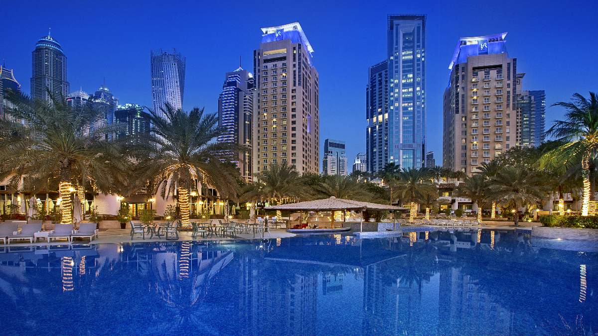 Az ötcsillagos szálloda Jumeirah Beach tengerparti szakaszán, a kikötő közelében található, közvetlenül a tengerparton. A repülőtér 39 km-re, míg a Mall of Emirates bevásárlóközpont gépkocsival kb. 15 percre, metróval mindössze 4 megállóra van. Akik a közelben keresnek vásárlási, étkezési, szórakozási lehetőséget azoknak a sétatávolságra lévő The Walk tengerparti sétánya, vagy a közeli Marina felkeresése javasolt.