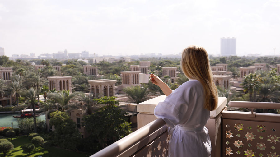 A Madinat Jumeriah Resort gyönyörű kertjére és vízi labirintusára vagy a tengerre néző, arab és antik bútorokkal berendezett tágas szobák és a napsütéses privát balkon tökéletes nyugalmat biztosítanak a pihentető kikapcsolódáshoz. Alapterülete: kb. 55 m².Felszereltsége: légkondicionáló, arab díszítésű fürdőszoba márványkáddal és zuhanyzóval, tv, telefon, minibár (felár ellenében), szobaszéf, hajszárító, vasaló és vasalódeszka kávé- és teafőző. A szobában legfeljebb 3 felnőtt és 2 gyermek (12 éves korig) elhelyezésére van lehetőség.