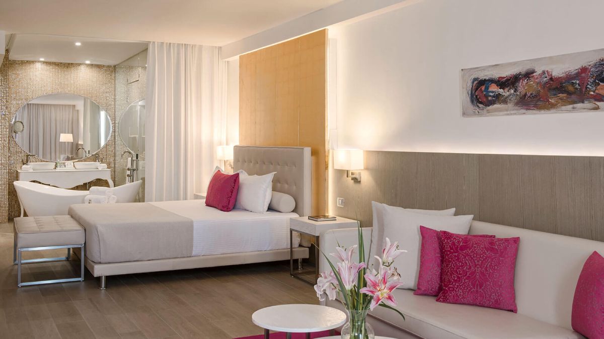 A deluxe junior lakosztály exkluzív stílussal és rengeteg természetes fénnyel várja a tágas szobáiban a vendégeket. A bútorozott erkélyes szoba a központi medencére néz, ahol a legnagyobb kényelemben tölthető el a pihenés.